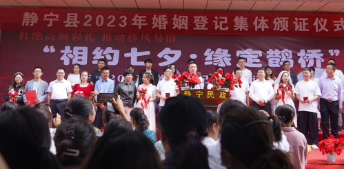 静宁县举行“相约七夕·缘定鹊桥”婚姻登记集体颁证仪式