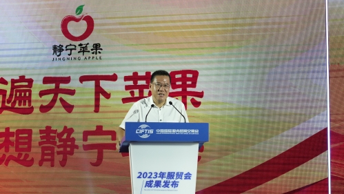 9月2日至6日,2023年中国国际服务贸易交易会(以下简称“服贸会”)在北京国家会议中心举办,静宁苹果作为中国驰名商标、地理标志保护产品受邀参会。静宁县委副书记杨军红,县委常委、县政府副县长王悉润在会上推介静宁苹果。