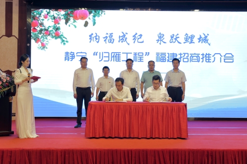 9月9日,“纳福成纪 泉跃鲤城”——静宁归雁工程福建招商推介会在福建泉州召开。厦门大学生命科学院副院长李勤喜、厦门市住房保障和房屋管理局主任张国仁、泉州市社会组织行业党委书记吴军川应邀出席并与静宁县委书记何鹏峰,县委常委、统战部部长马存维一同见证签约。县委办、县工信局、县供销社、县工商联、县招商服务中心、县陇原红果品公司、县四海食品有限公司参会。推介会现场共邀请福建方面参会嘉宾和企业家代表100余人。