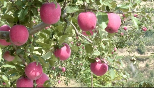 在另一个静宁苹果产销乡镇,新店乡小湾村的梁梁垴垴,漫山遍野的苹果园里,红艳硕大的苹果缀满枝头,到处散发着芬芳诱人的果香,呈现出一派丰收的喜人景象。