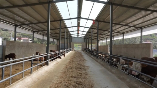 走进三合乡北集村养殖小区,新建的牛舍宽敞整洁,设施齐全,不时从里面传出一阵阵“哞哞”牛叫声声,何双牛在草料棚内收拾草料,准备喂牛。
