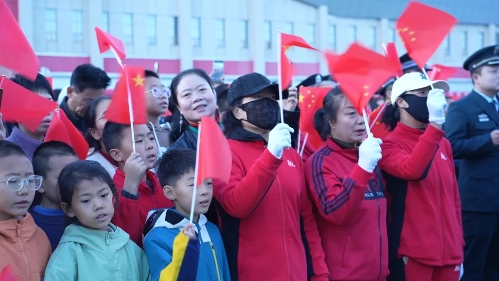 城关小学学生于悦说:“今天和妈妈一起来参加升国旗仪式,感觉非常壮观。祝祖国妈妈生日快乐!”