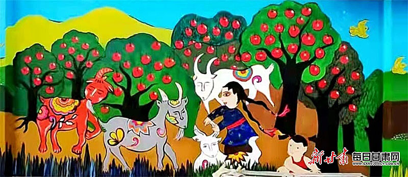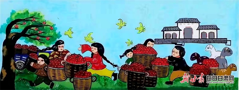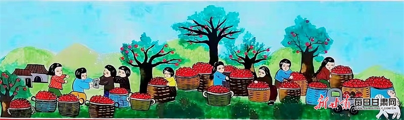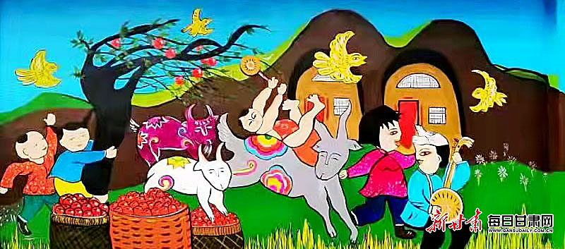为配合美丽乡村建设,近日,庆阳市庆城县农民画协会组织15位农民画爱好者冒严寒、战风雪,在驿马儒林村、廿里铺村、白马王畔村,用七八天时间画了约七百平方米的墙画,都是反映农民日常劳动、生活场景的农民画,受到广大群众的喜爱和赞许,已成为农村一道靓丽的风景。