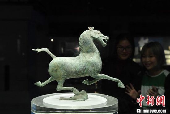 2020年6月17日,参观者欣赏甘肃省博物馆展出的“铜奔马”真品。(资料图)杨艳敏摄