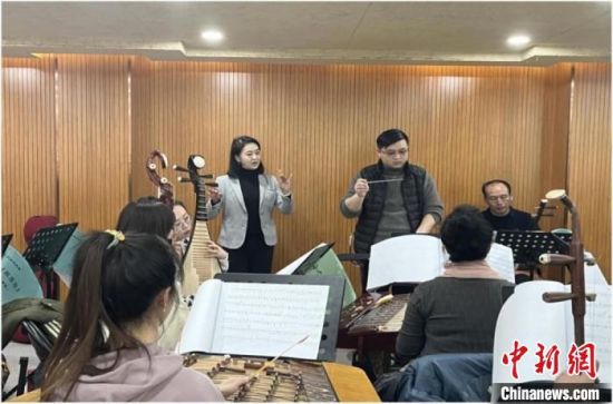 陇剧国家级传承人窦凤霞(左一)和徒弟们进行排练。(资料图)张煜曼摄