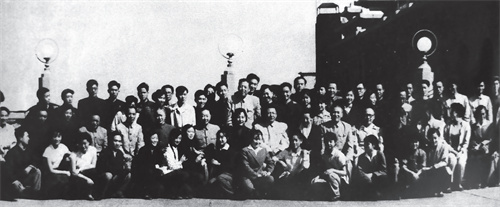 张治中等中央领导同志及梅兰芳、杜近芳等艺术家在北京饭店与我团演职人员合影