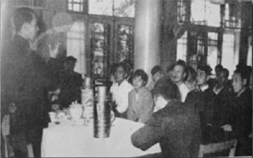 梅兰芳先生在宴会上与《枫洛池》演职人员碰杯庆祝演出成功
