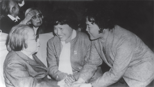 1986年邓颖超和老一辈老陇剧人袁冬梅、高欣惠见面时的情景