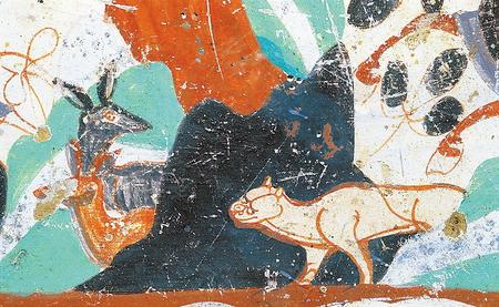 莫高窟第296窟的虎与鹿(敦煌研究院供图)