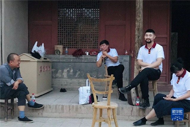 2021年6月,刘小同(右二)和同事一起参加文艺活动排练。新华社发(受访者供图)