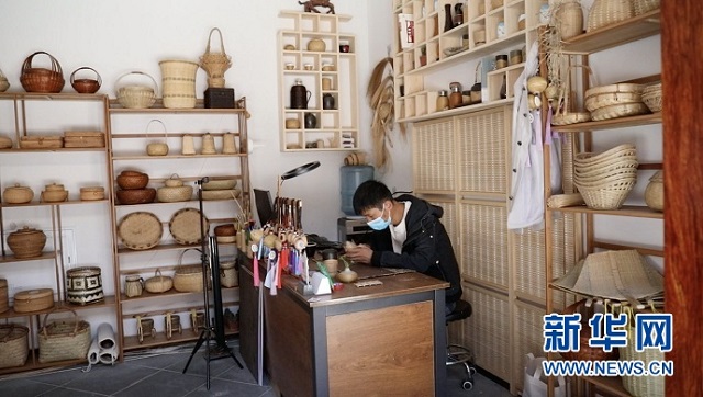 图为天水古城西关片区的手工竹编馆。新华社记者 文静 摄