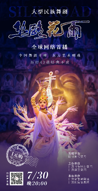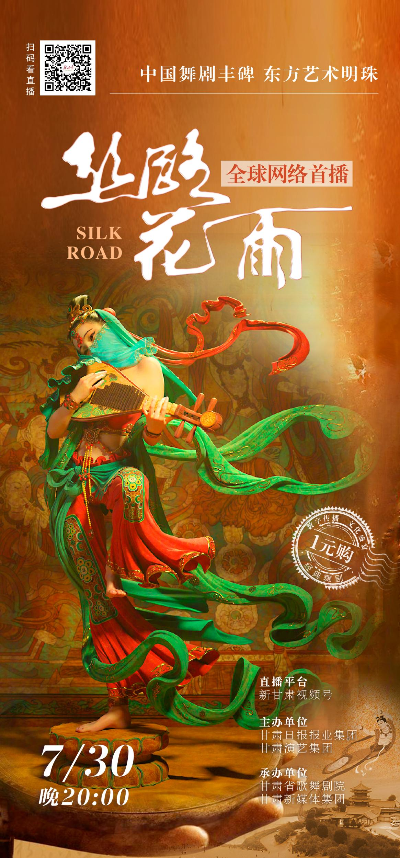 7月30日,大型经典舞剧《丝路花雨》将通过新甘肃客户端视频号全球首播。这也是一个公益性文化“大礼包”。观众只需支付1元钱,就能领略《丝路花雨》的魅力。