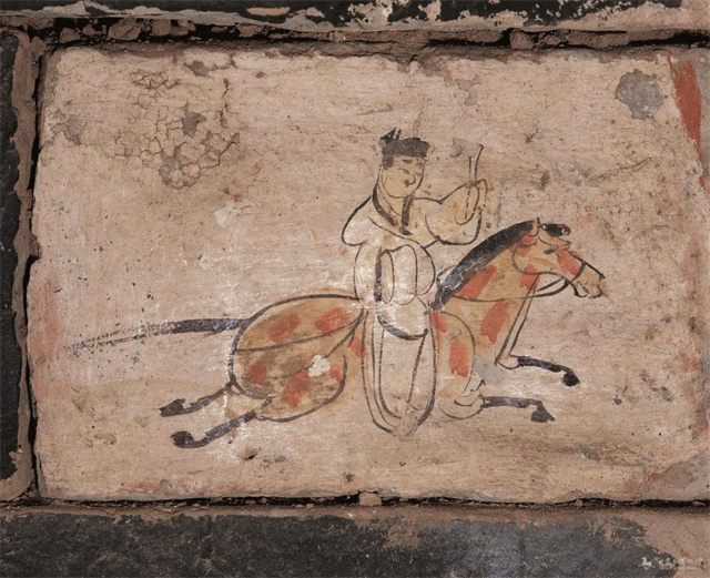图为甘肃省嘉峪关市魏晋5号墓出土的文物“驿使图”壁画砖。砖上绘一信使,头戴黑帻,着皂缘领袖中衣,左手持棨传文书,跃马疾驰。驿使脸上五官唯独缺少嘴巴,意在表明昔日驿传的保密性。此图曾作为中国邮政标志物。(甘肃省博物馆供图)