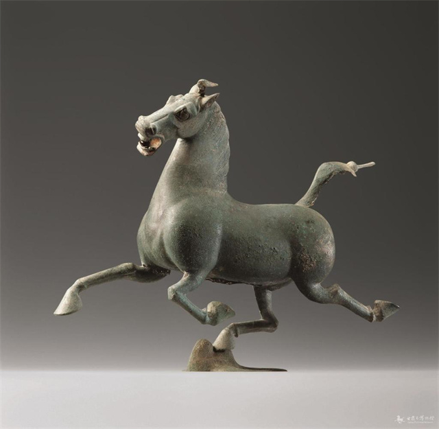 图为甘肃省武威市雷台汉墓出土的文物铜奔马,因一马单足超掠飞鸟的定格造型,也被称为“马踏飞燕”。1983年被国家旅游局确定为中国旅游标志。(甘肃省博物馆供图)
