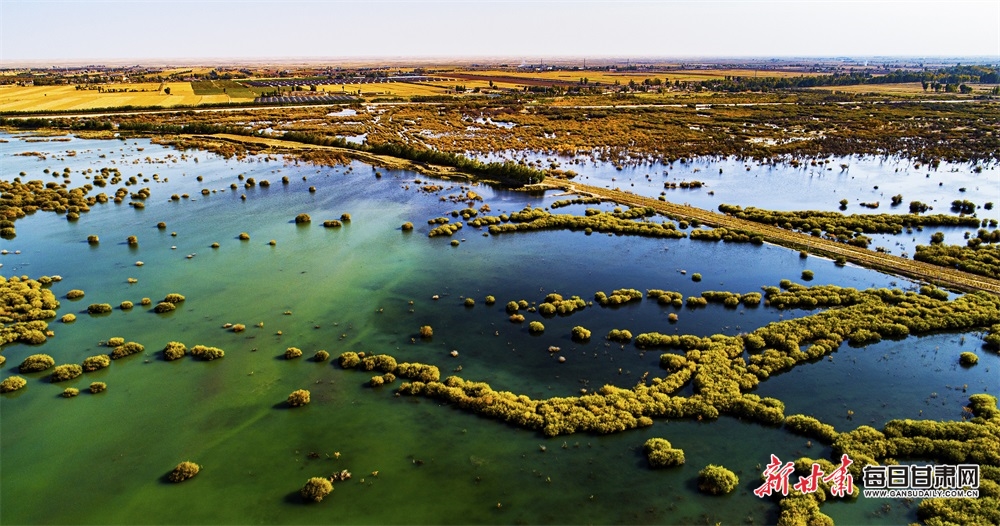 【大河奔腾看甘肃】黄叶如墨染沃野 野鸭戏水泛清波 秋日民勤红崖山水库比画还美