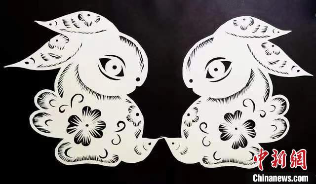 图为甘肃“非遗人”创作的剪纸兔。(资料图)