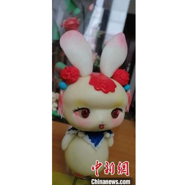 今年以来,甘肃省非遗保护中心集中展示非遗传承人手工兔子。图为非遗糖塑兔。(资料图)