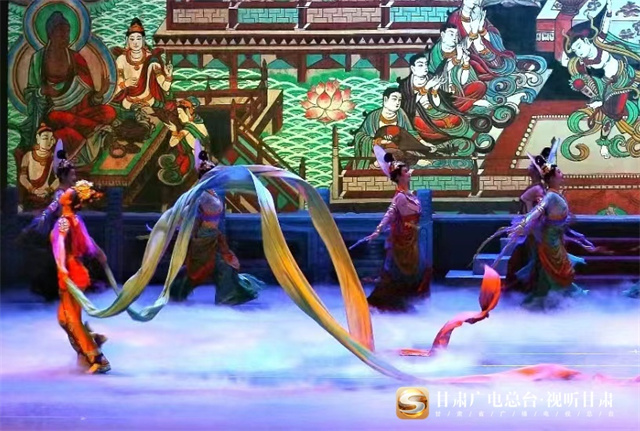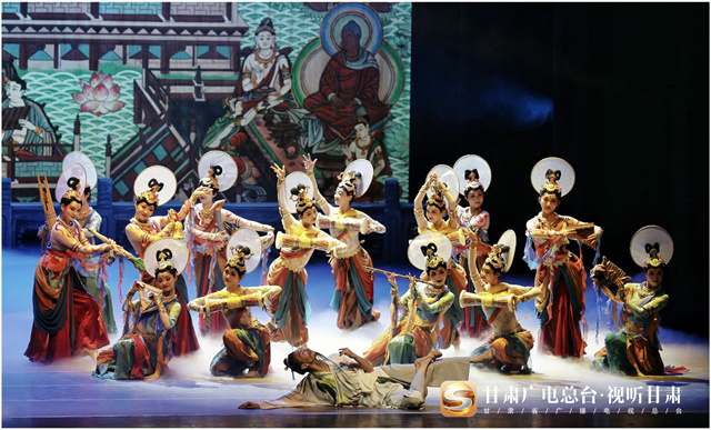 丝路漫漫、驼铃悠扬,舞剧《丝路花雨》给观众徐徐展开古丝绸之路的历史画卷,这部凝聚了甘肃文化符号的舞剧,每到一处就会引起“敦煌热”,无论是在敦煌文化的传播、敦煌学的普及以及敦煌舞蹈的演绎方面,都有着无可替代的作用。《丝路花雨》已连续演出44年,成为“一带一路”上的甘肃文化名片和向全世界讲述中国故事的完美范本。