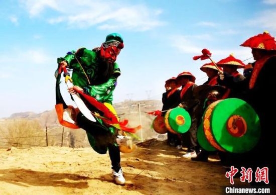图为甘肃临夏州永靖县村民表演傩舞。(资料图)侯奇志 摄