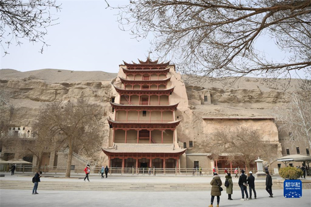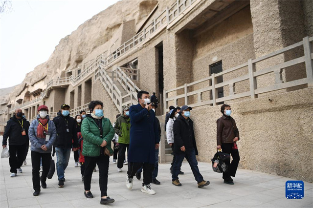游客在莫高窟参观游览(3月14日摄)。新华社记者 陈斌 摄
