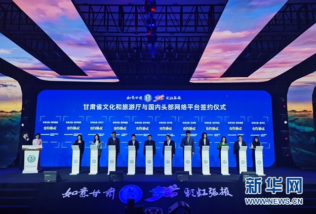 甘肃省文化和旅游厅与国内头部网络平台进行签约。新华网发(王生元摄)