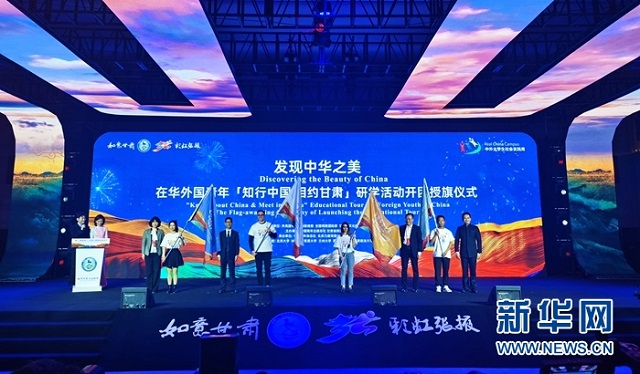 “知行中国 相约甘肃”研学活动授旗仪式。新华网发(刘欣瑜摄)