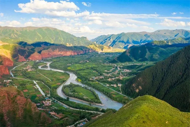 一条大通河将天堂镇与青海隔开,河的这头是天祝天堂镇,河的那头是青海互助县。鸟瞰天堂,群峰环抱,林木葱郁,流水潺潺,清净幽生,人间天堂。