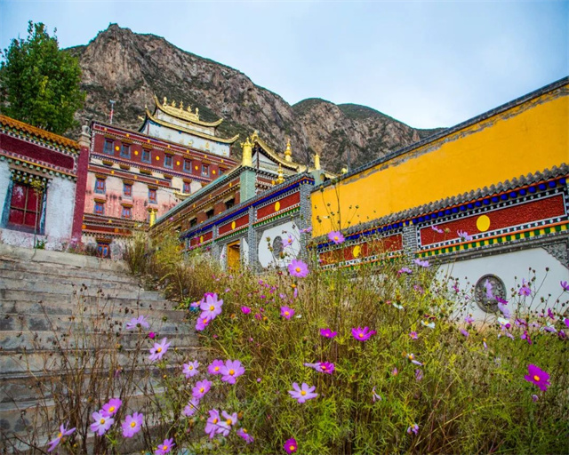 行至“天互公路”的终点,便到了有“天祝小江南”之称的——天堂镇。天堂镇因天堂寺而有名,金瓦红墙的寺院掩映在绿荫翠柏之中,分外静谧。
