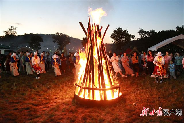 游客们在平南镇举行篝火晚会。(资料图)