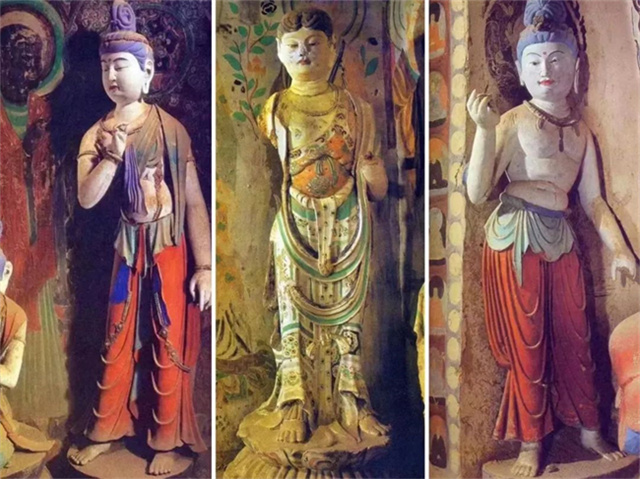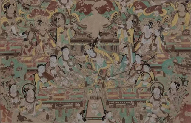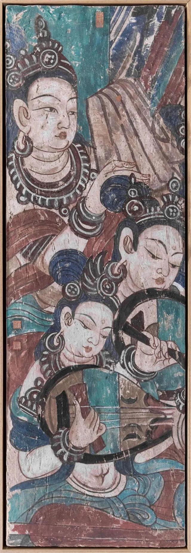 敦煌壁画中的古乐器(上:琵琶;左下:箜篌;右下:阮)
