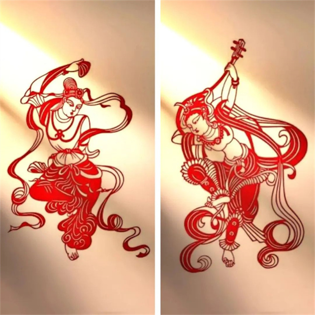 敦煌民间剪纸历史久远,有喜花、灯花、衣饰花、窗花等,形式多样,题材广泛,造型饱满,构图别致,工艺精细。近年来,敦煌剪纸艺人紧紧围绕莫高窟壁画等敦煌文化元素,开展剪纸艺术创作,其作品具有鲜明的敦煌特色,衣袂风动的飞天,线条流畅的菩萨,巍峨壮观的莫高窟九层楼,栩栩如生,惟妙惟肖,形象地展现了敦煌艺术的独特魅力。2008年,敦煌剪纸入选第二批甘肃省非物质文化遗产名录。