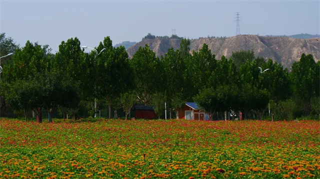 谁说花是春天的专属?瞧瞧,秋天的黄河花堤好不热闹!艳丽夺目的翠菊打破了“黄菊与秋宜”的传统认知,为秋日的滨河小城着上了姹紫嫣红的一笔。百年枣林葱郁繁茂,青绿发白的枣子挂满枝头,即将进入成熟期。玫瑰、鹅黄、紫堇,绚丽多彩的百日菊是秋日花海中当之无愧的主角,用斑斓的色彩涂抹着秋天的画布。醉蝶花开沐秋风,彩蝶翻飞花丛中,醉蝶花海伴着微风,掀起阵阵波浪。雪白、黛紫的花瓣盛开,形同蝴蝶翩然飞舞,轻盈飘逸,细长的花蕊丝缕不绝,似千般温柔的缠绕。四时俱可喜,正值秋好时。秋日黄河花堤全无萧瑟之意,处处芳菲不尽,花香四溢,摇曳成秋日最饱满的色彩。