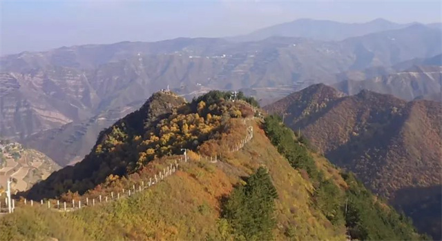 抱龙山又名太平山,位于关山乡北部,县城东50公里,向南距兰州市西固区约5公里处,因山势起伏,状如龙耸脊昂首状,故名(《皋兰县志》)。抱龙山总面积为15000亩,其中森林面积484.4公顷。秋季的抱龙山,漫山红叶,彩林满目,宛如一个五彩斑斓的童话世界。从伸手可触的眼前之景到遥不可及的漫山遍野,一幅绚丽的美丽图画映入眼帘。那一抹红,一点蓝,一片金黄,搭配得刚刚好!色彩明亮的红叶和五彩缤纷的彩林共同组成了秋天绚丽的风景。走在蜿蜒的龙脊之上,拂过面颊的风、掠过耳边的鸟鸣,闯入眼帘的景,让你全身心融入自然,放空身心,流连忘返。