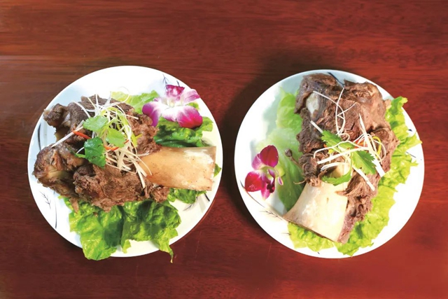 白牦牛棒子骨,是天祝独有的一种特殊吃法。棒子骨肉质劲健,很有嚼劲,再加上软糯浓香的骨髓,配上葱段蒜瓣,唇齿留香,令人回味无穷。