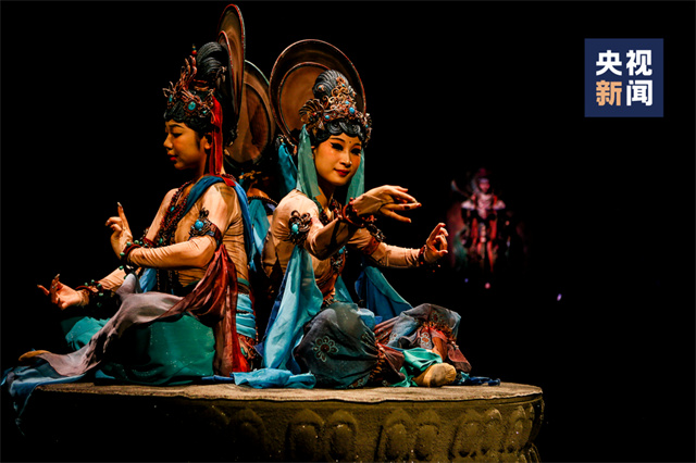 全球首部洞窟式沉浸体验剧《乐动敦煌》,展示了敦煌古乐器、古乐谱的研发成果,再现敦煌盛景。