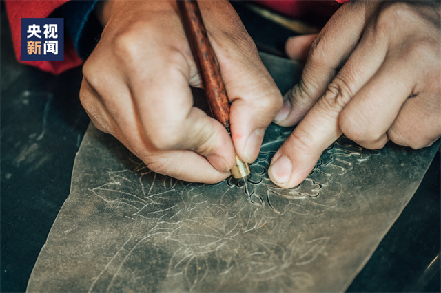 手艺人雕刻皮影