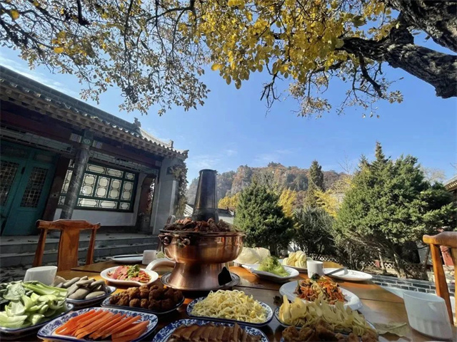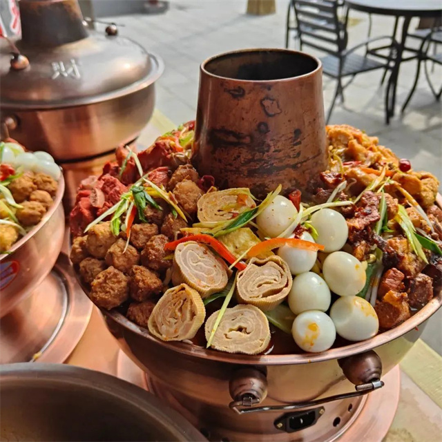 崆峒山庄特色暖锅中的丸子、红烧肉