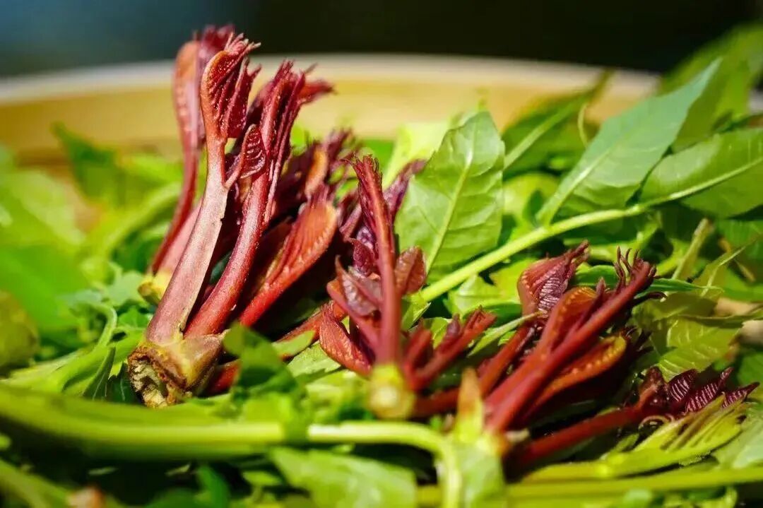 “一箸入口,三春不忘。”当春风微拂,香椿树便冒出酒红色的嫩芽,散发着独特的浓郁香气。