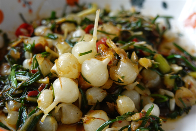 对甘肃人来说,春天吃沙葱是必不可少的 ,它是戈壁滩上难得的绿色,是大西北少有的时令菜。