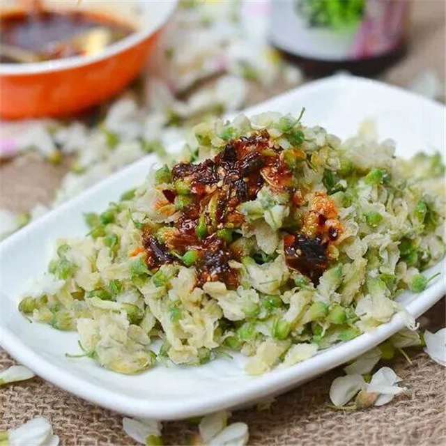 图源:庆阳市文体广电和旅游局槐花炒蛋,鲜醇与清甜相融,尝尽自然本味;拌面蒸成槐花饭,撒上香油细盐,满口都是槐香与面香的缠绵;烙成槐花饼、制成蜜饯,每一种吃法,都将春日的甜意揉进舌尖。