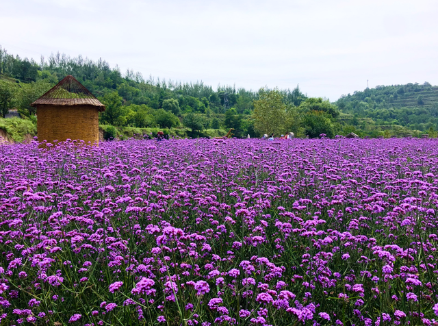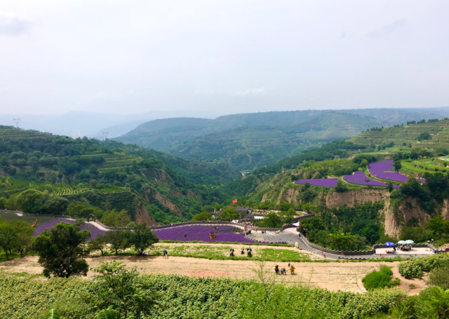 在白庙乡的梯田花海放眼望去,连片的紫色花海在阳光下格外耀眼,背后的青山在这抹紫色的映衬下,也显得更加鲜亮。