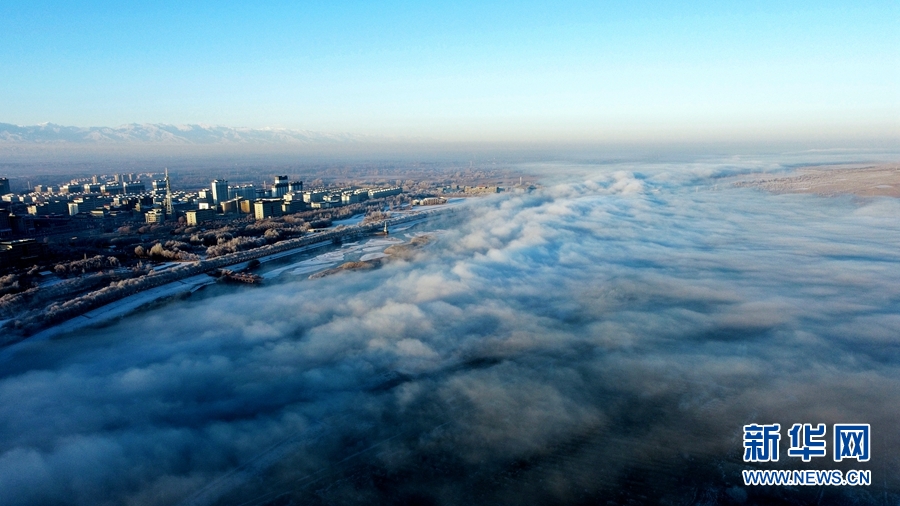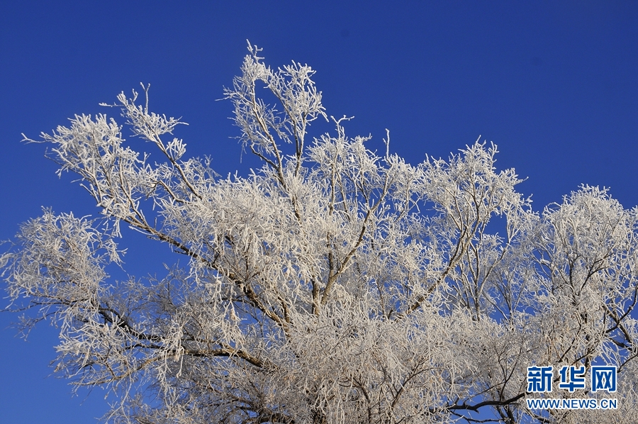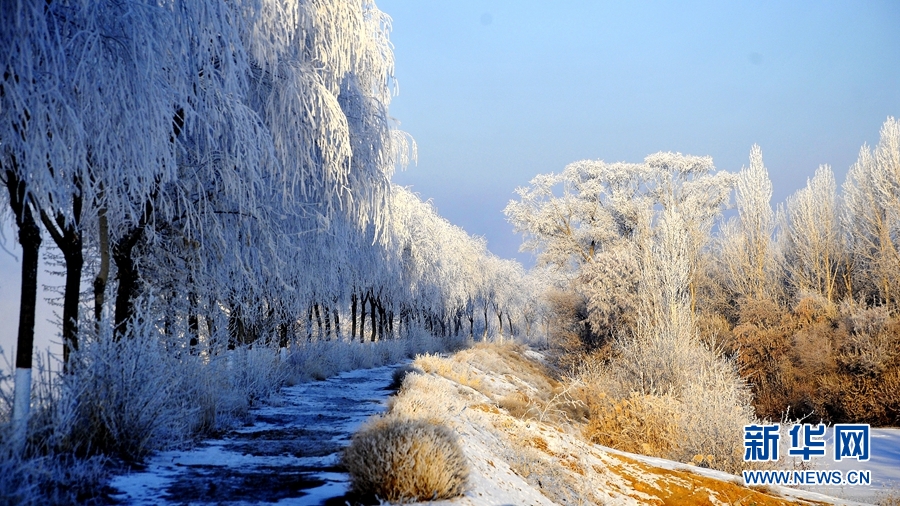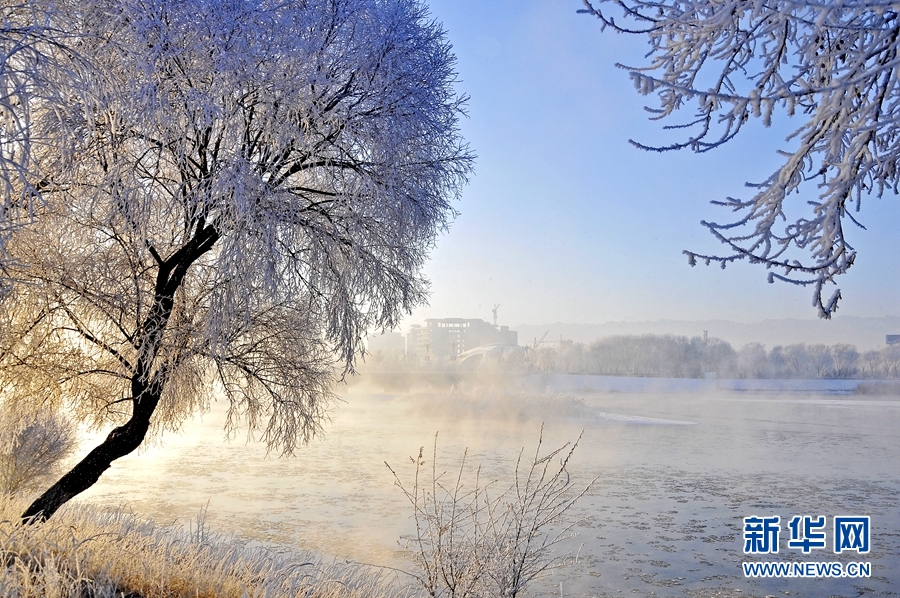 冬日清晨,甘肃省张掖市高台县境内的黑河湿地雾气缭绕,两岸树木玉树琼枝,宛如梦幻仙境。新华网发(贾小龙 摄)
