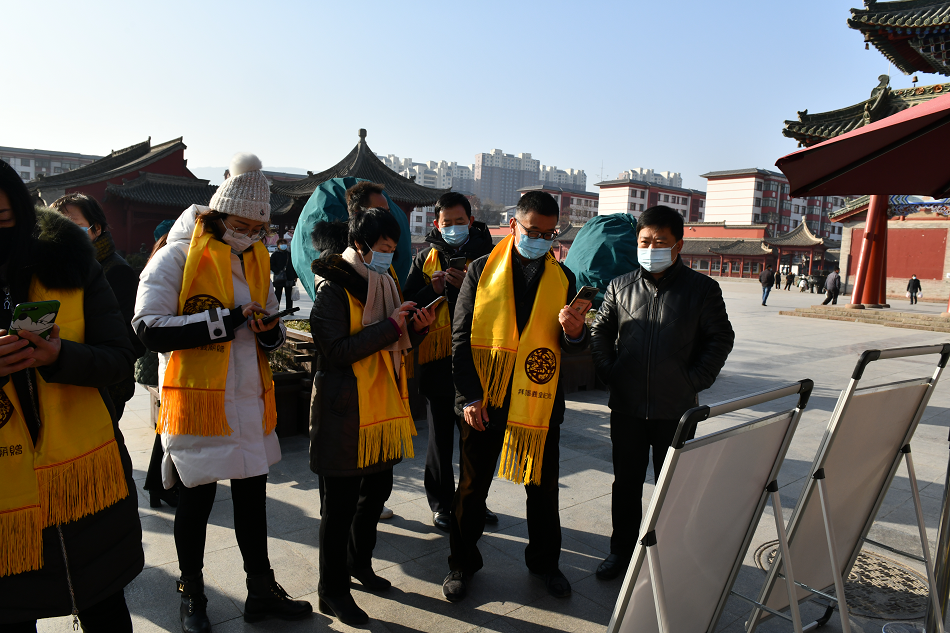 伏羲庙免费开放首日,前来拜谒伏羲和参观伏羲庙的市民凭身份证、扫健康码、伏羲庙参观码,领取《免费参观卷》,测量体温合格后进入庙区,有序祭祖和参观。天水伏羲庙景区售票处、门卫等工作人员一大早便冒着严寒坚守工作岗位,按照规定要求指导市民扫码、登记、测量体温合格等,做到有序参观游览和疫情防控相结合。