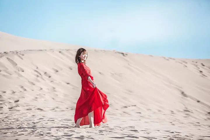 女孩子一定要去一次鸣沙山月牙泉,穿上一袭红衣在鸣沙山翩然起舞。骑着骆驼在鸣沙山上悠悠地走过,驼铃轻响,风与日光亲吻着面庞,转身就能望见美丽的月牙泉,这万般风情,只有在敦煌,这座丝绸之路上的“明珠”城市才能体验到。