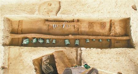 礼县大堡子山遗址秦代铜编钟发掘现场