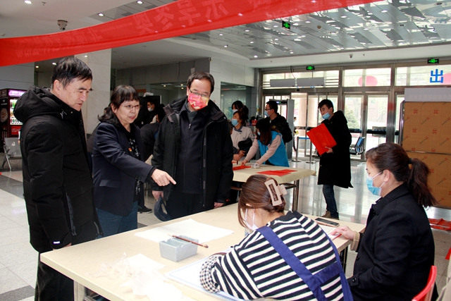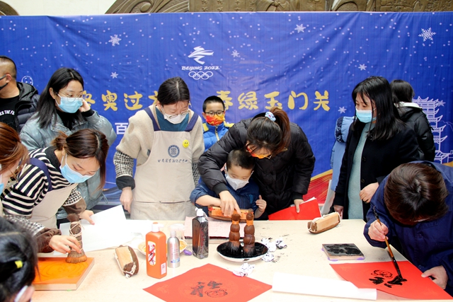 为了迎接即将在北京举办的第24届冬季奥运会和新春佳节的到来,1月25日,甘肃省图书馆举办了主题为“冬奥过大年·春绿玉门关——福虎迎春乐享冬奥”非遗传统文化体验活动,活动分雕版印刷体验送福、古籍修复技艺展示、碑拓、楹联书写赠送四项内容,100多位不同年龄段的读者参加了体验活动。活动现场呈现出“走近冬奥,喜迎新春”的浓厚气氛。甘肃省文旅厅副厅长吕兴来参观了此次活动。