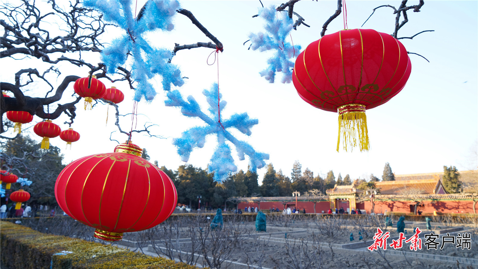 景山公园大红灯笼高高挂。
