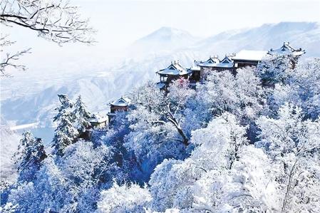 雪后的群峰,银装素裹,如蛰伏的巨龙,在深潜,在汇聚能量;而立于悬崖的古刹道观,一身素装,寂寞不语,颇有遗世独立的仙人之姿;雾凇蒙蒙,晶莹雪白,如梦如幻;飘落在手心的雪,如蝶,如羽,如天地间的精灵,肆意飞扬。登高壮观,原本有激情澎湃于胸,立于雪中,却被清冷的风与纯粹的白雪化解,如入旷世仙山,直让人“不敢高声语,恐惊天上人。”