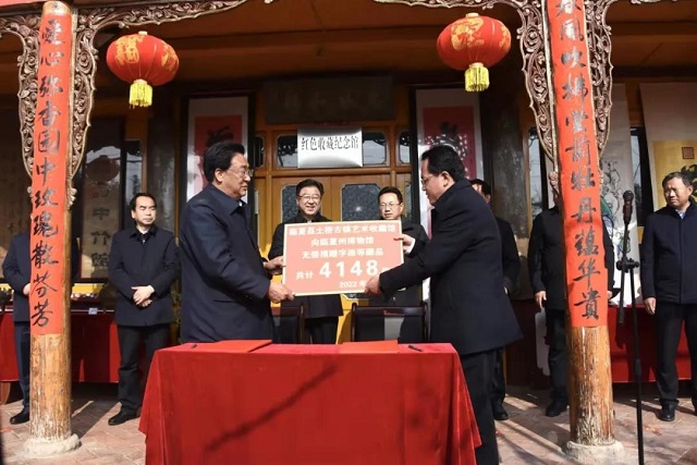 2月7日,徐秀卓先生藏品捐赠仪式在临夏土桥古镇艺术收藏馆举行。临夏州委书记郭鹤立,州委副书记、州长何东,州委常委、州委秘书长李文瑞出席,州委常委、州委宣传部部长邵志刚致辞。
