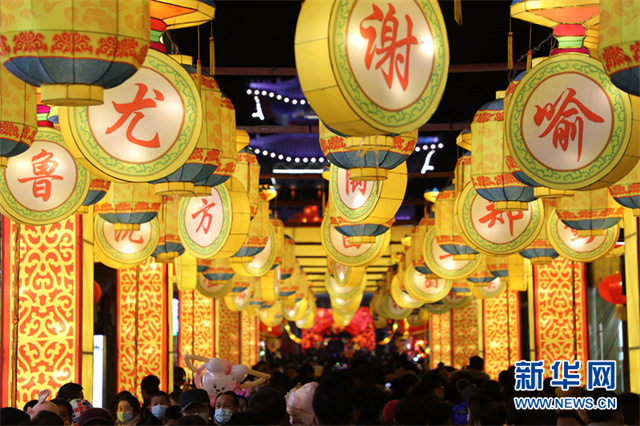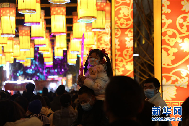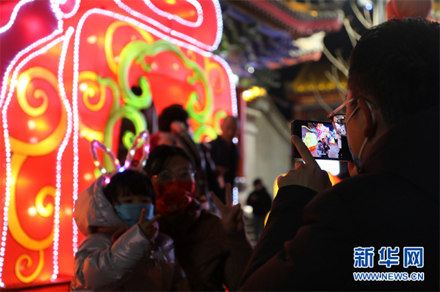 图为市民和游客在兰州老街观赏花灯。新华网(刘欣瑜摄)